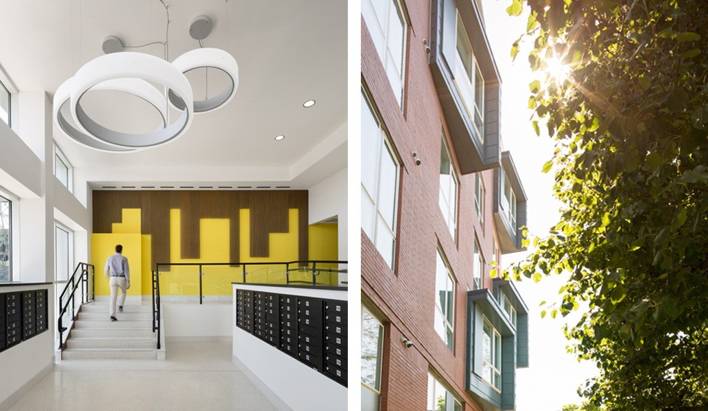This 96 apartment development consists of a four-story, wood-framed residential structure over a steel-frame. Duplex units line the edges of the developments, connecting with the existing neighborhood context. A large courtyard provides a visual connection to Fulmore Park, which is located across the street. The cool, contemporary lobby and amenity spaces provide passage through the first floor. Residents can enjoy Chroma’s roof deck as well, which provides stunning views to the Charles River and the city skyline.
