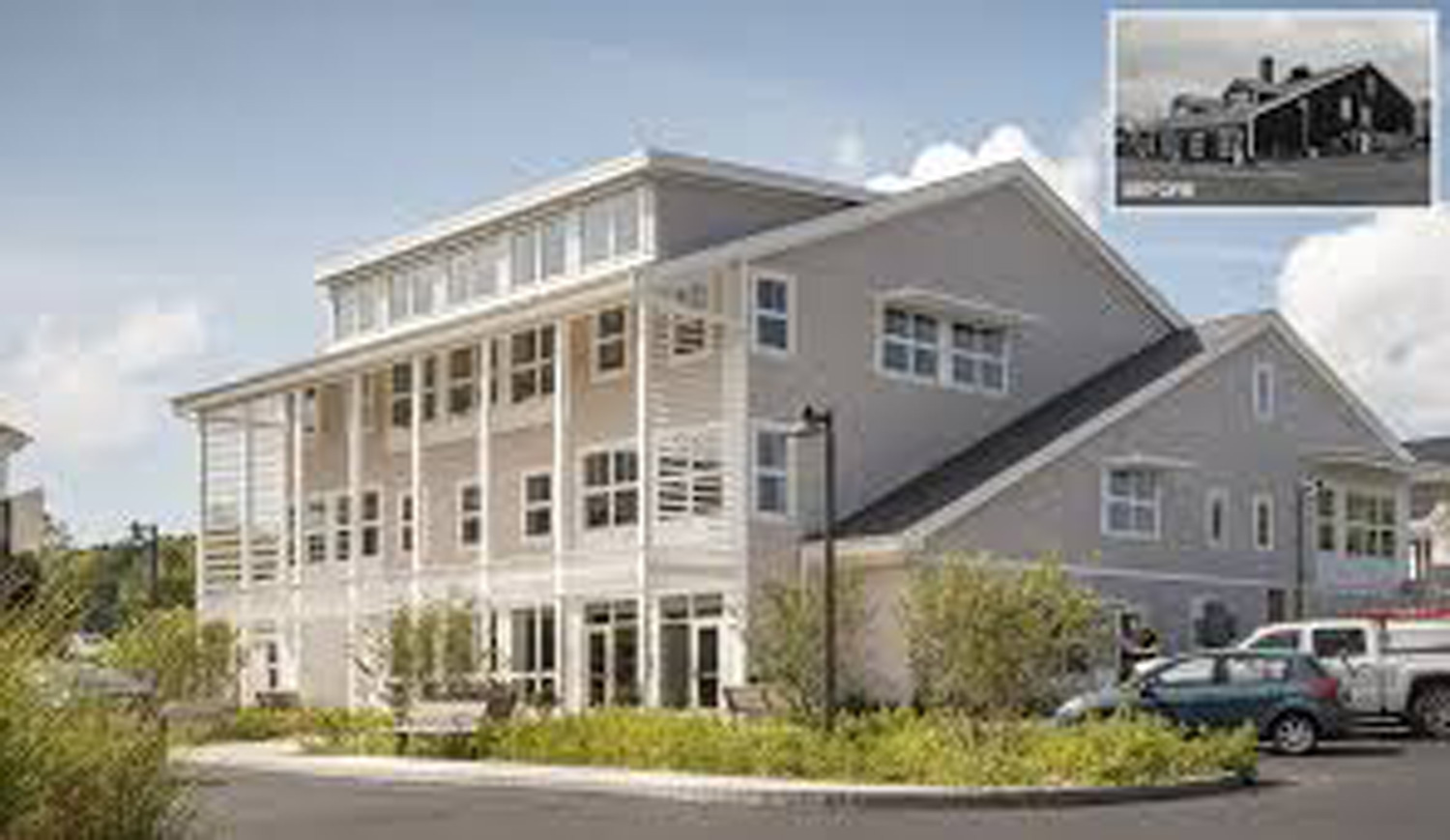 The town hall was located in a school building constructed in 1938, then expanded in the 1960’s. After a detailed assessment of the existing building, the design team determined that the existing heavy timber roof construction, floors, and exterior walls could be retained (approximately 50% of the existing building). The new 17,320 SF town hall design inserts a steel and heavy timber structure and an additional floor within the existing building footprint. In addition to reusing the existing structure, the building envelope was upgraded to meet Passive House performance standards. The design features exterior shading and daylight harvesting. The building systems are all electric. No fossil fuels are used, and the building is PV-ready.