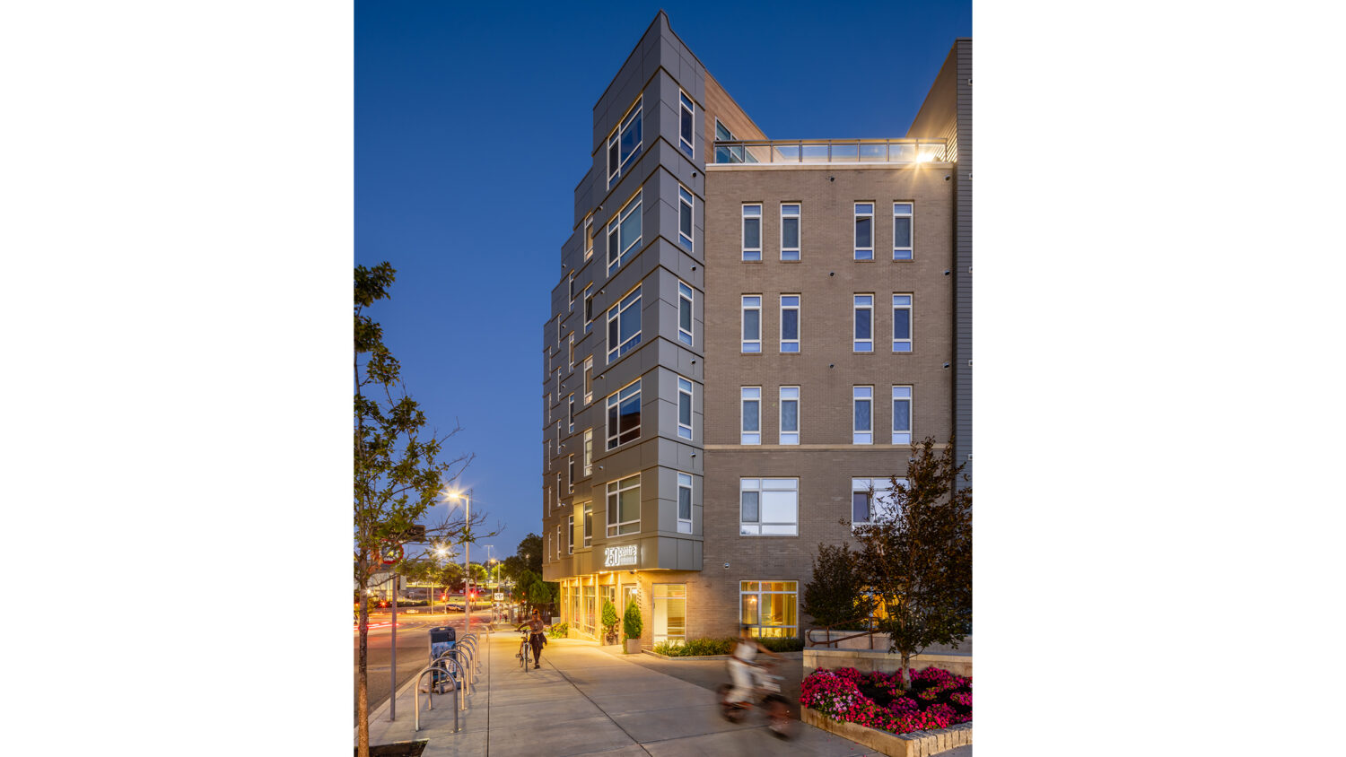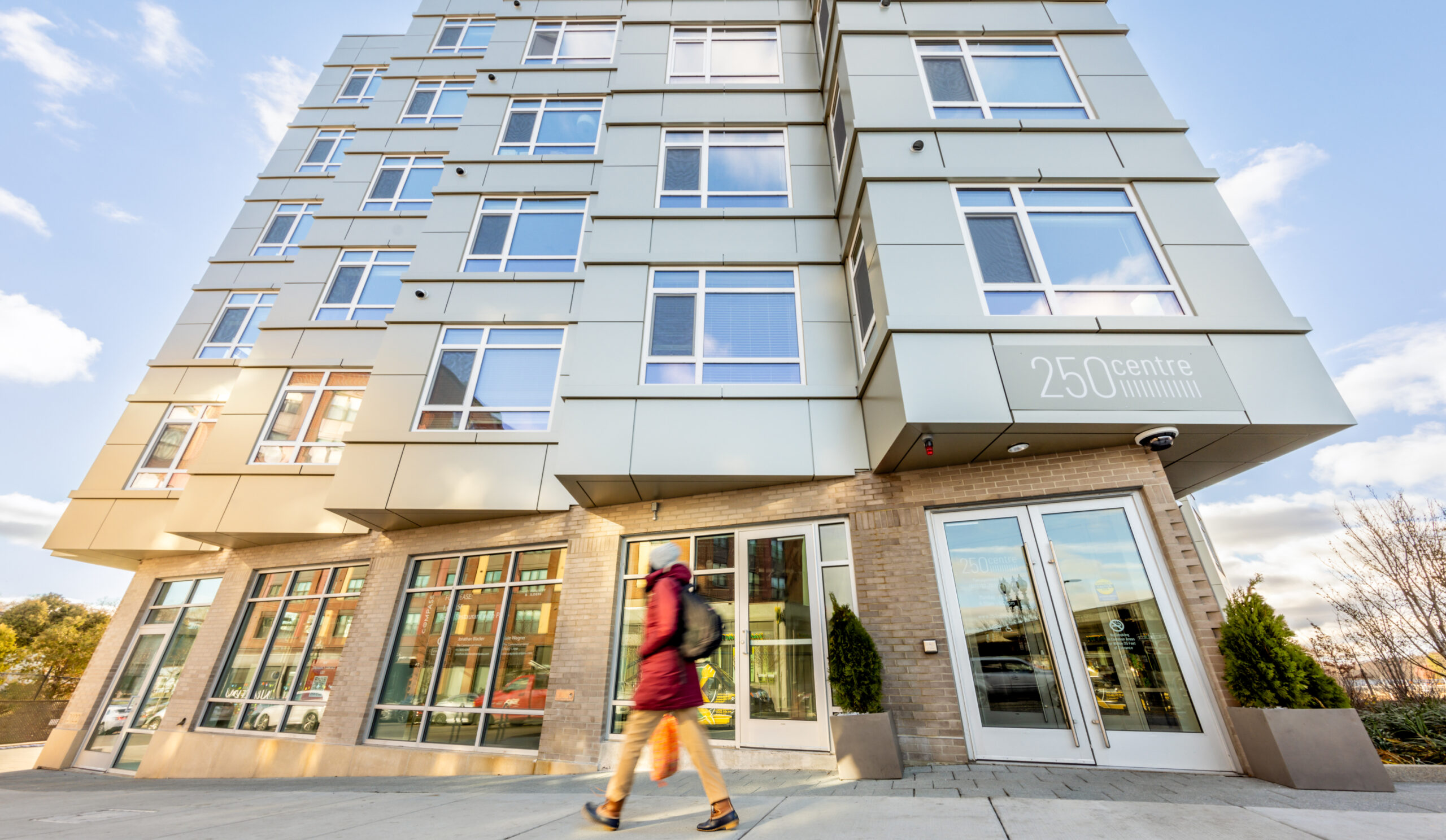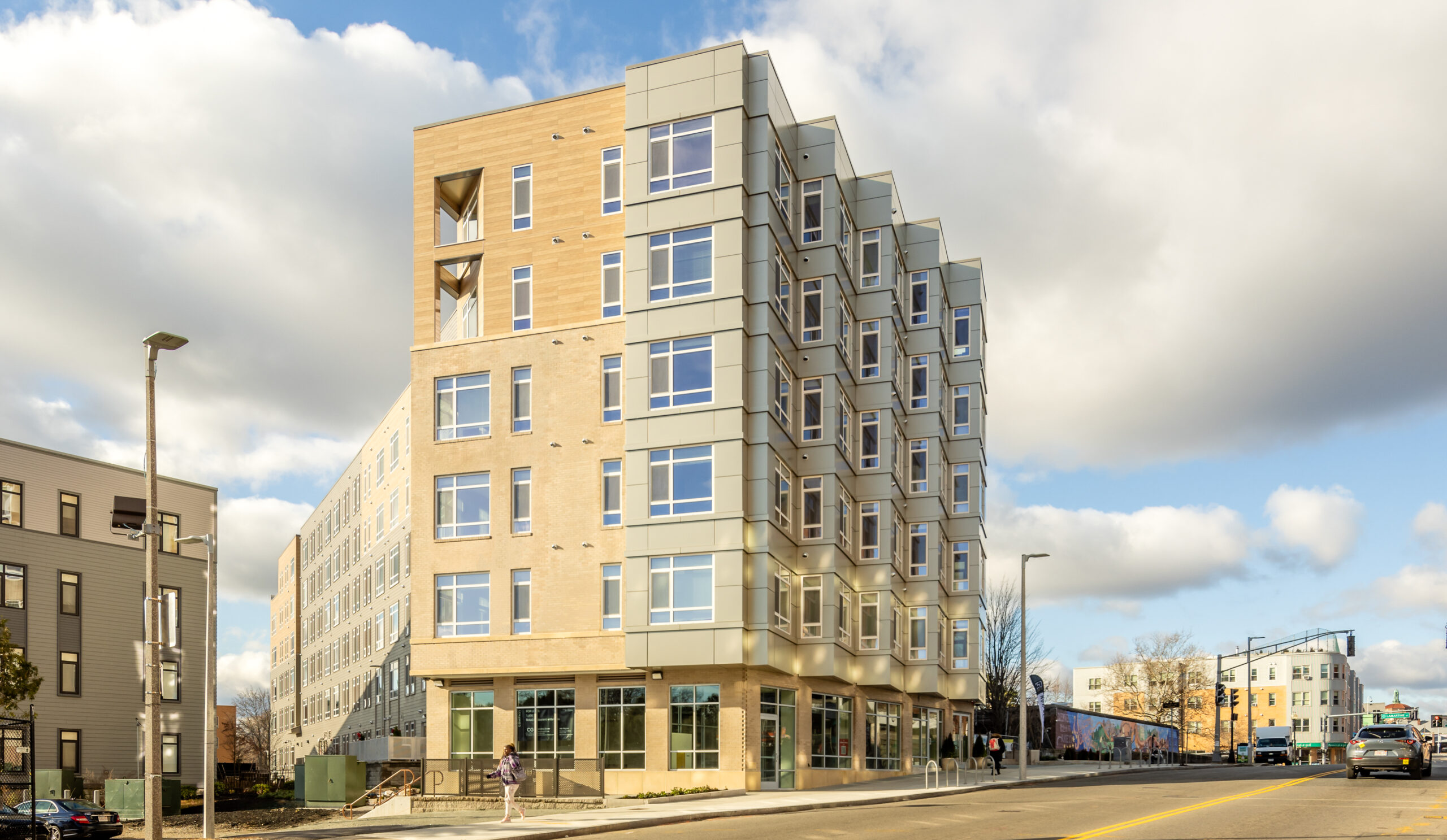 250 Centre Street re-knits the communities of Roxbury and Jamaica Plain together, filling a long-empty lot left behind by the abandoned I-95 highway project.