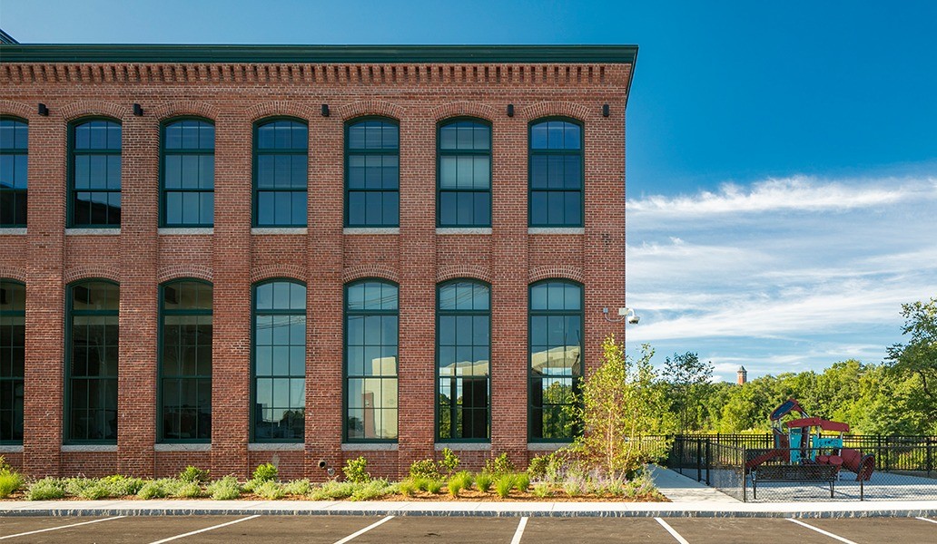Arlington Point is the adaptive reuse of a historic 1919 mill building within the Arlington Mills along the Spicket River.