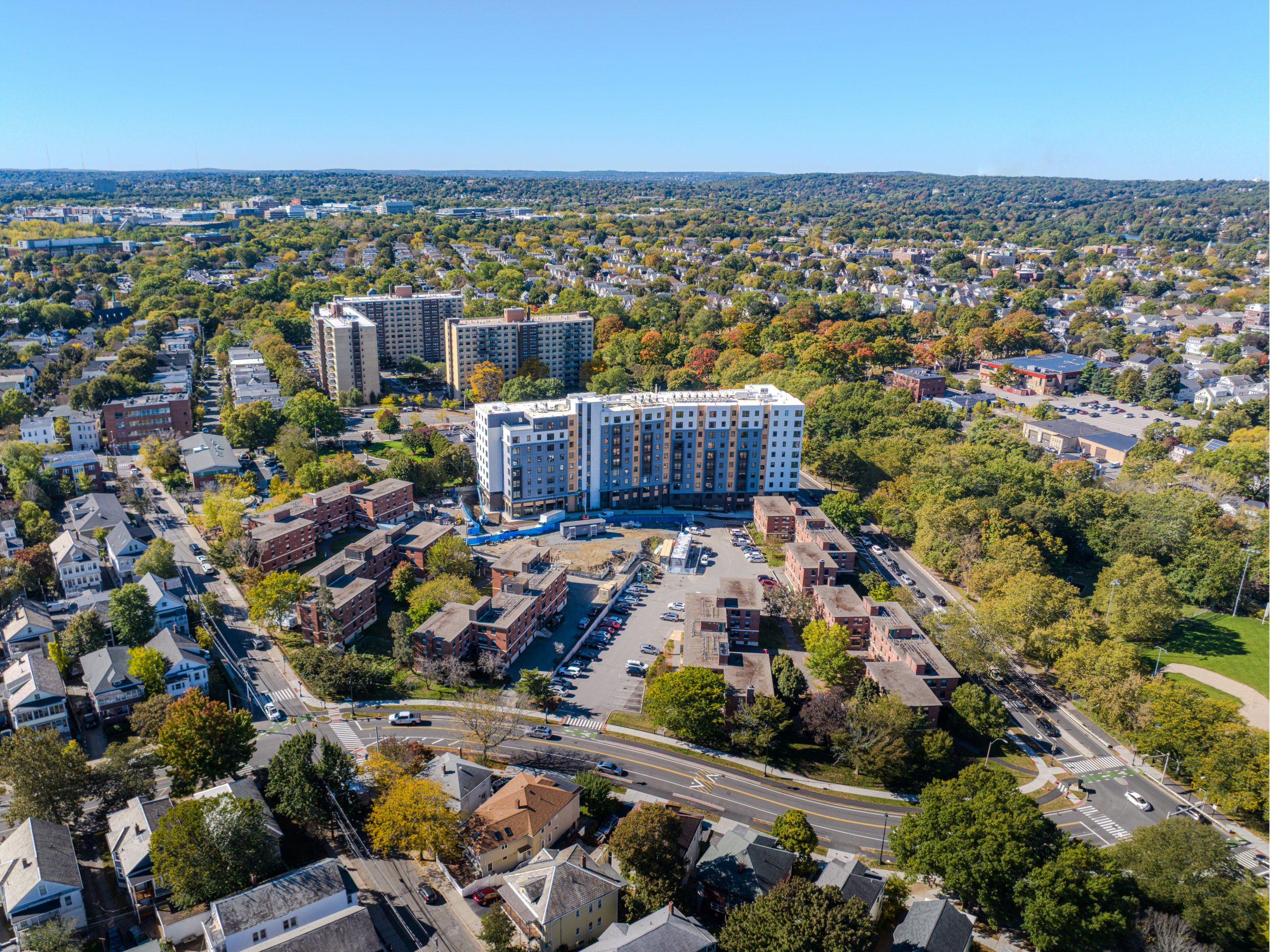 Building E anchors the first phase of the Clarendon Hill Redevelopment, replacing 1940s-era public housing with 168 high-performance new homes. This project introduces a first-of-its-kind steel high-rise modular system to the region, demonstrating that off-site construction can deliver high-density housing with both architectural character as well as schedule efficiencies.
