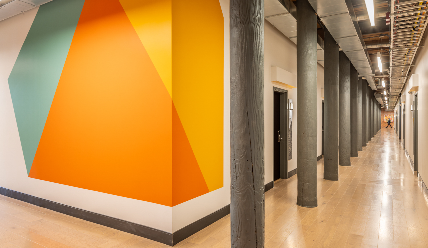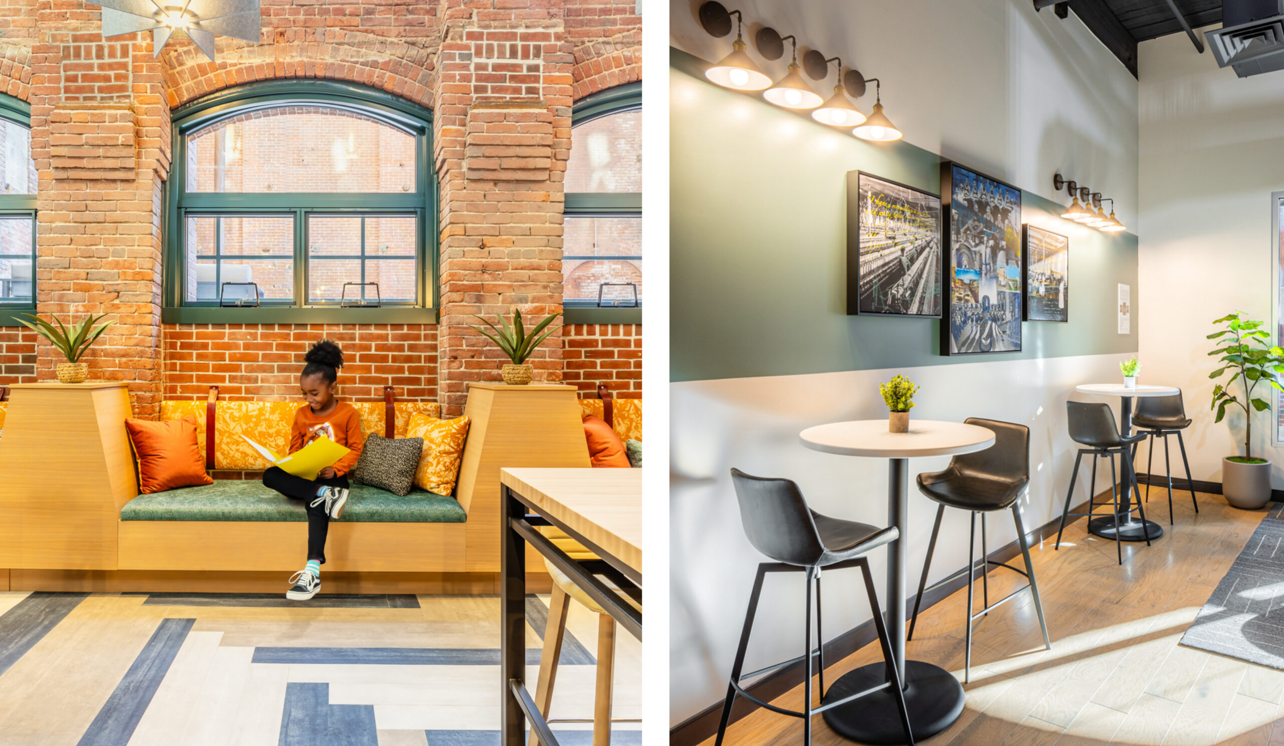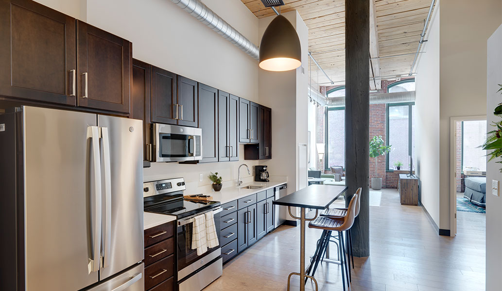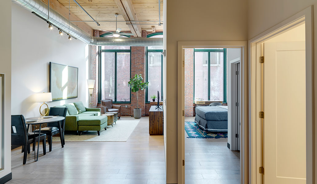 While respectful of the Secretary of the Interior’s Standards for Rehabilitation, the redevelopment blends the building’s rich history with contemporary life. Large, high-ceilinged apartments are naturally daylighted by historically sensitive windows; many loft spaces tuck within the higher ceiling areas. The design blends the best of the old with new, restoring masonry walls, both inside and outside, exposing ceiling beams and columns, and reusing sliding metal doors in a nod to the building’s history.