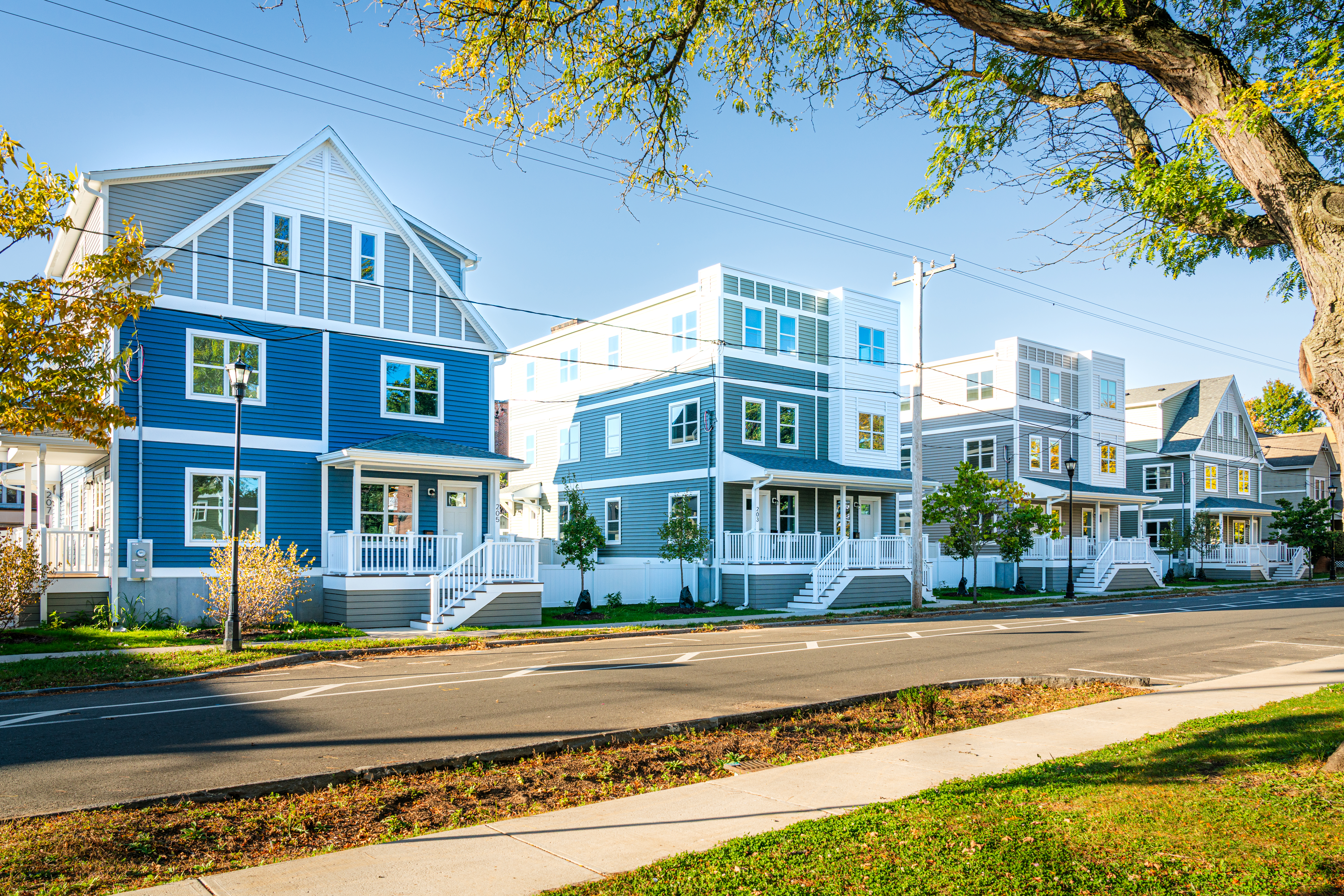 Holyoke Homes marks the second phase of a multi-phase infill strategy, utilizing modular construction to deliver high-quality homeownership duplexes to the Gateway City of Holyoke. Designed for three- and four-bedroom households, these homes provide private yards and rear parking while bridging the neighborhood’s residential scale with the historic, masonry-heavy character of downtown South Holyoke.