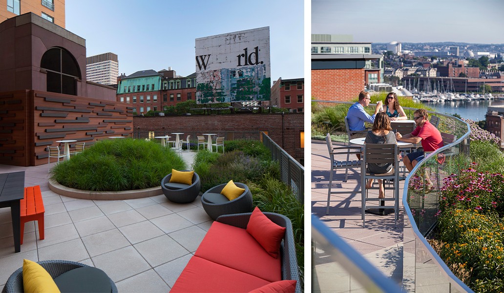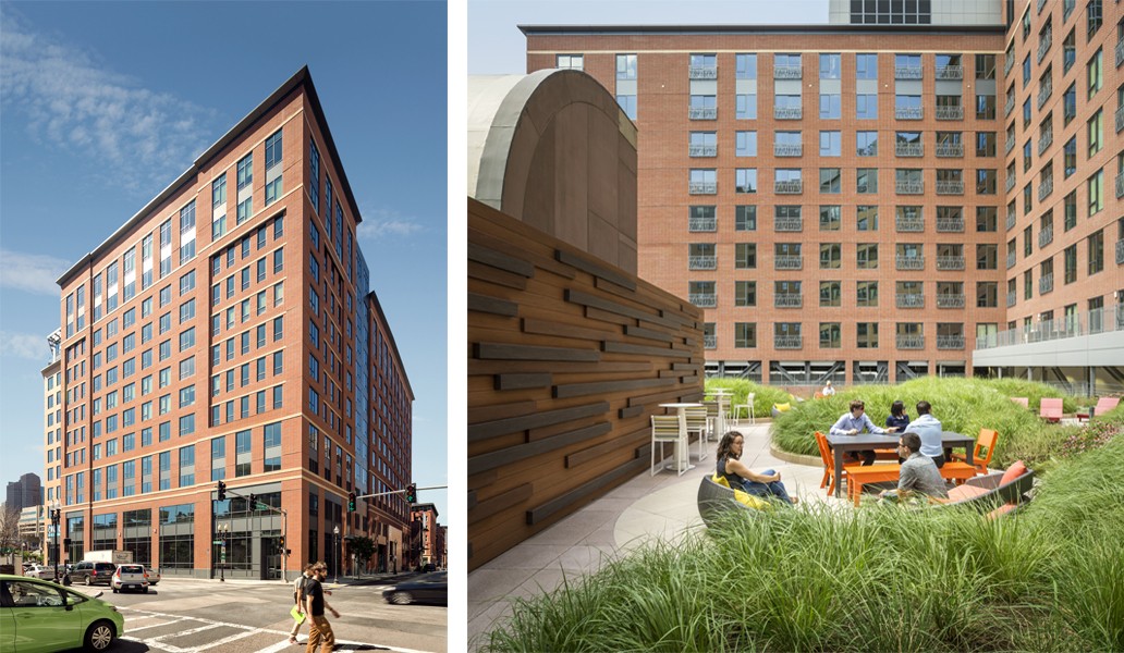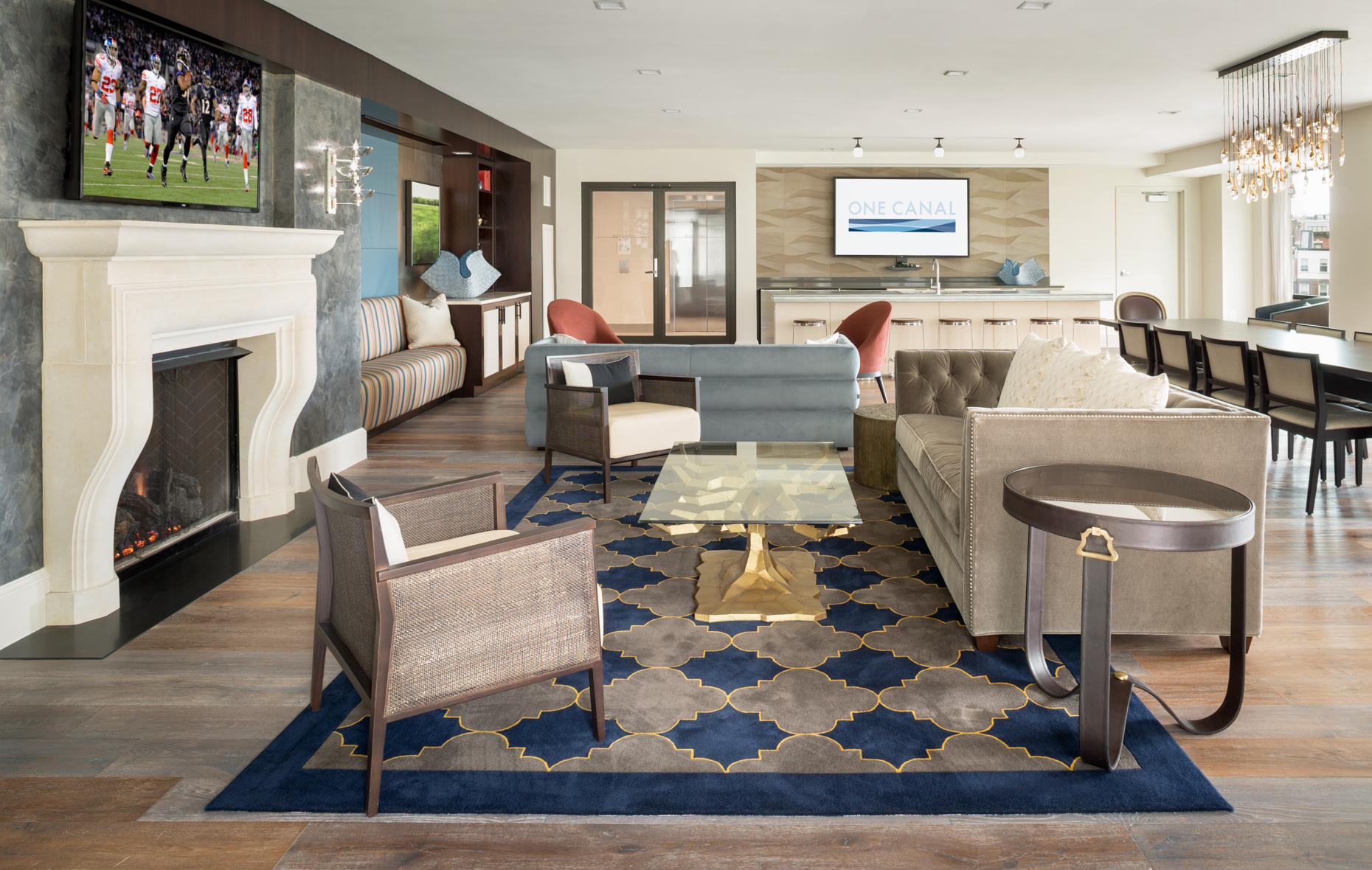 One Canal merges major new street level retail space and parking into this active sports and entertainment district, and rises up to twelve stories to capture views of the linear parkway and inner harbor beyond. The upper levels array 310 luxury apartments, each with high-end finishes and open living areas. Amenity spaces are distributed throughout the building on multiple levels, and include a state-of-the-art fitness center, courtyard grill community space, pavilion firepit, and a rooftop pool and movie screening feature space.