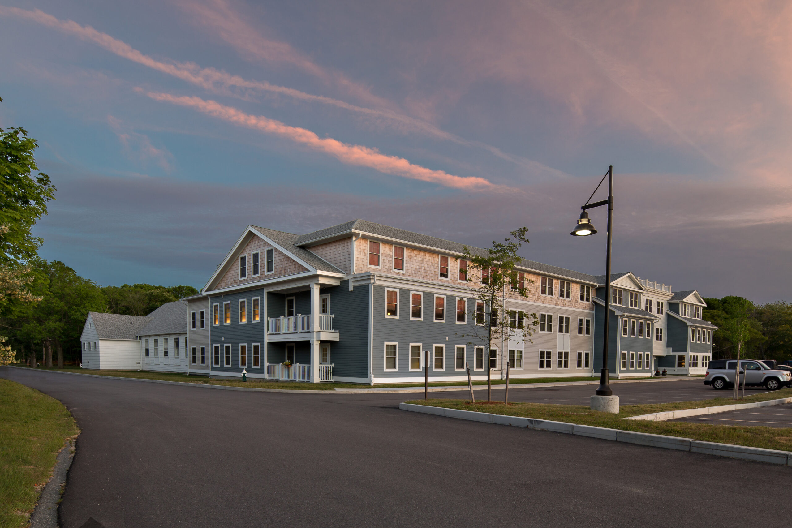 The adaptive reuse, which totals up to 78,000 SF, includes a historically-sensitive addition per the Cape Cod Commission’s Regional Policy Plan. Amenities include a community room and an expansive green space which enlivens the landscape.