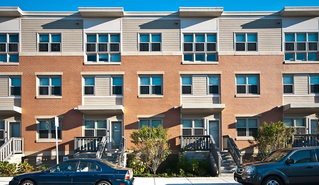 Each building responds to its immediate context while contributing to a unified streetscape. Highland Homes combines 49 rental and condominium units across three scaled buildings that reflect the rhythm of traditional neighborhood blocks. Janus Homes organizes 18 units around a shared native planting garden, creating a defined interior landscape. Spencer Row places 32 apartments above a parking podium, blending private-entry townhouses with flats to maintain an active street edge. Highland Terrace overlooks a new city park and achieved LEED for Homes Platinum certification. One Webster anchors Eastern Avenue with 120 mixed-use apartments above retail, its bent form addressing intersecting street grids and reinforcing the corner condition.