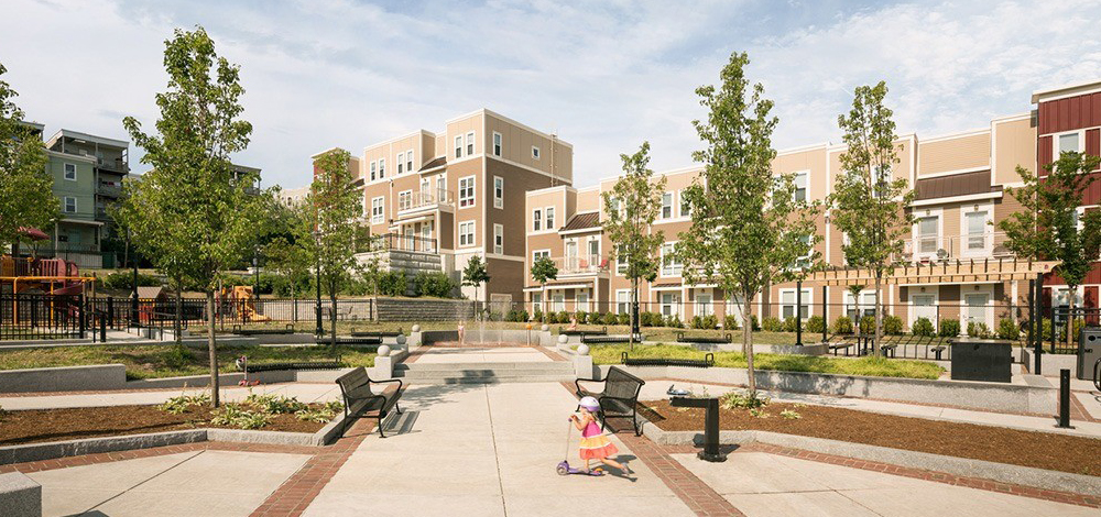 This former box manufacturing district has been transformed as a 250+ unit, multi-block residential neighborhood that stitches new housing into Chelsea’s existing urban fabric.