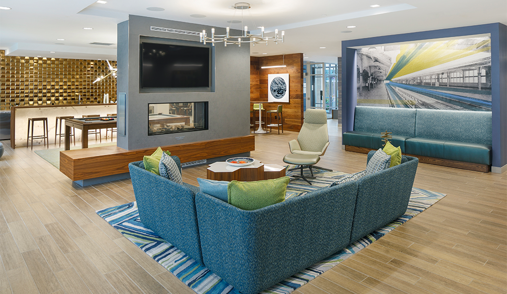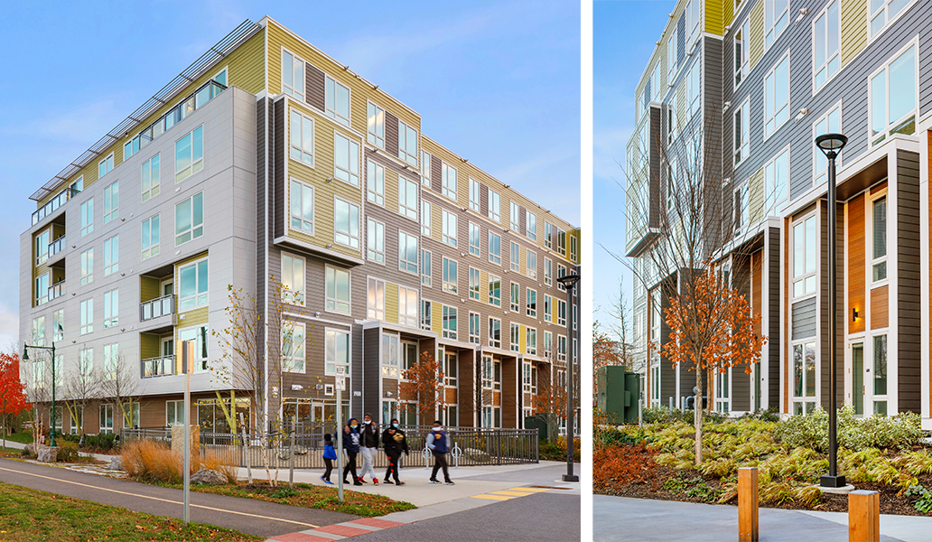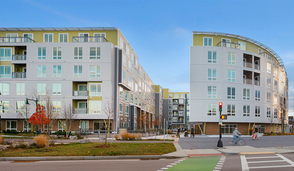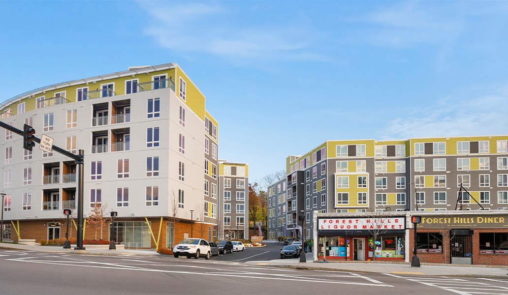 Fronting Olmsted’s historic Arborway and steps from Forest Hills T-station, Velo has transformed a two-acre asphalt parking lot into a vibrant, transit-oriented community. A curved façade floating above a street level portico greets the public, inviting pedestrians to enjoy new commercial space and the adjacent public pocket park. The three separate buildings embrace a lushly landscaped interior court, enlivened by public and private entrances and providing access to below-grade parking. The club house offers a variety of amenities supporting wellness and community. The fitness center includes separate indoor/outdoor yoga space; the commercial kitchen and game room open up to a secluded courtyard, where residents can cook, relax or garden. Residents can also enjoy private balconies with fantastic views of the City and surrounding open space. The project achieves LEED Gold certifiability and includes electric charging stations and rooftop photovoltaic panels.