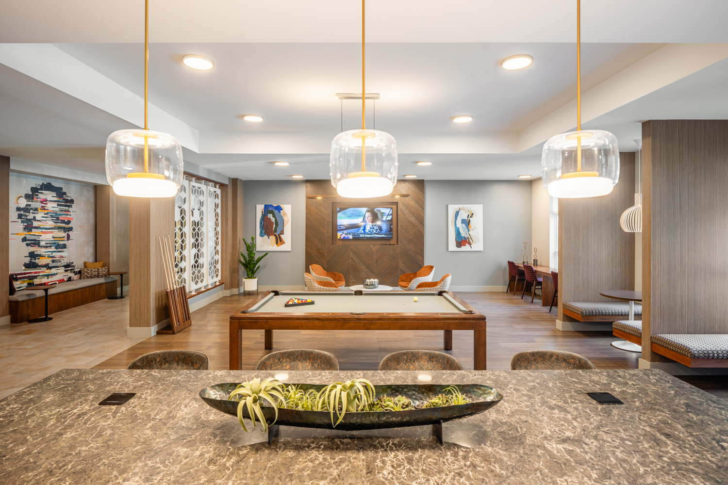 Fronting Olmsted’s historic Arborway and steps from Forest Hills T-station, Velo has transformed a two-acre asphalt parking lot into a vibrant, transit-oriented community. A curved façade floating above a street level portico greets the public, inviting pedestrians to enjoy new commercial space and the adjacent public pocket park. The three separate buildings embrace a lushly landscaped interior court, enlivened by public and private entrances and providing access to below-grade parking. The club house offers a variety of amenities supporting wellness and community. The fitness center includes separate indoor/outdoor yoga space; the commercial kitchen and game room open up to a secluded courtyard, where residents can cook, relax or garden. Residents can also enjoy private balconies with fantastic views of the City and surrounding open space. The project achieves LEED Gold certifiability and includes electric charging stations and rooftop photovoltaic panels.
